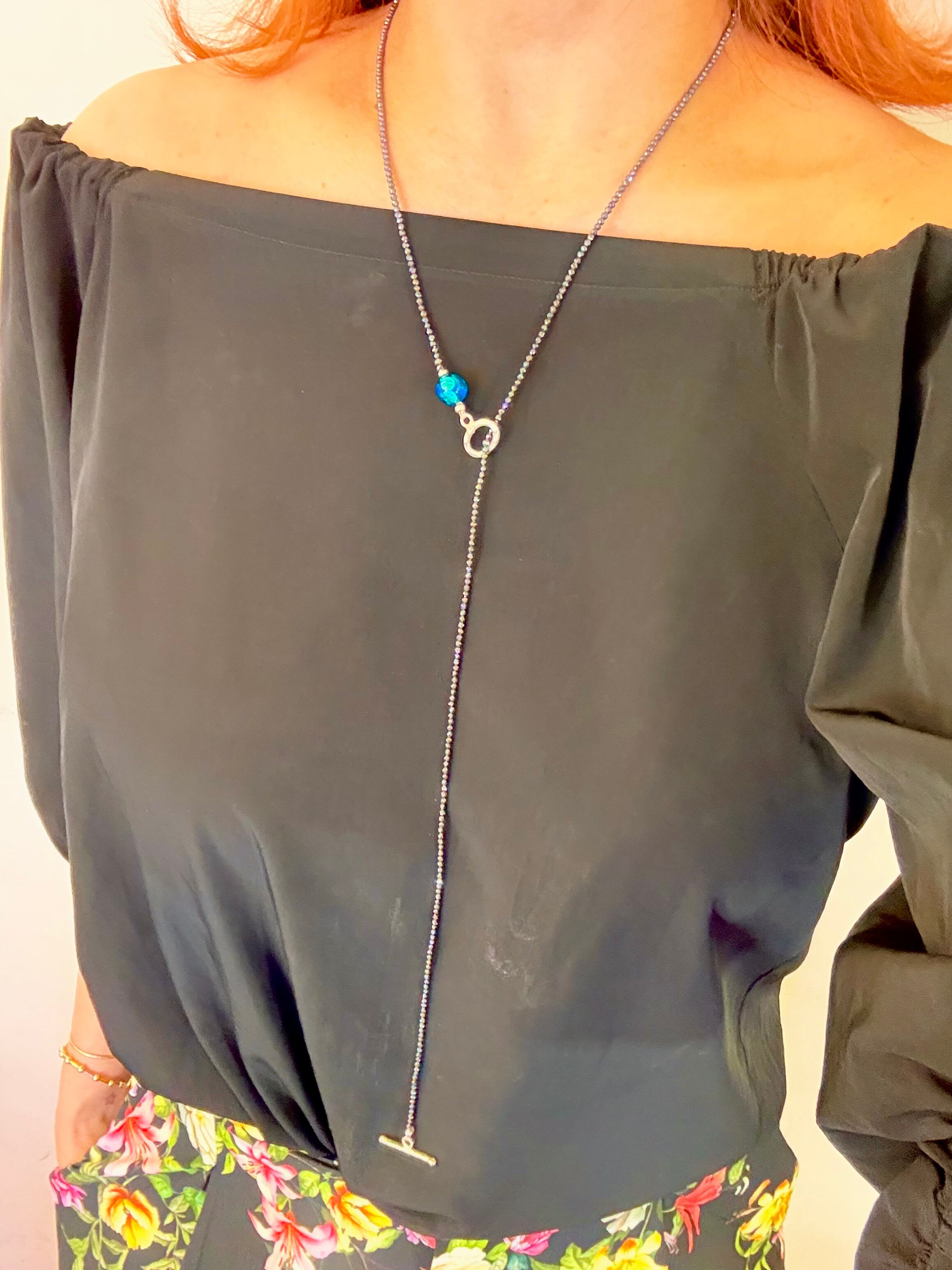 こちらの3wayヘマタイトネックレスは、光るホタルガラスと美しいヘマタイトの組み合わせが特徴です。石垣島のshopでも大人気の商品です。ホタルガラスは石垣島の自然の美しさを反映し、さりげなく光を放ちます。シンプルでありながら、存在感は抜群!ヘマタイトの深いグレーとホタルガラスの輝きが調和し、どんなシーンでも目を引くアイテムです。