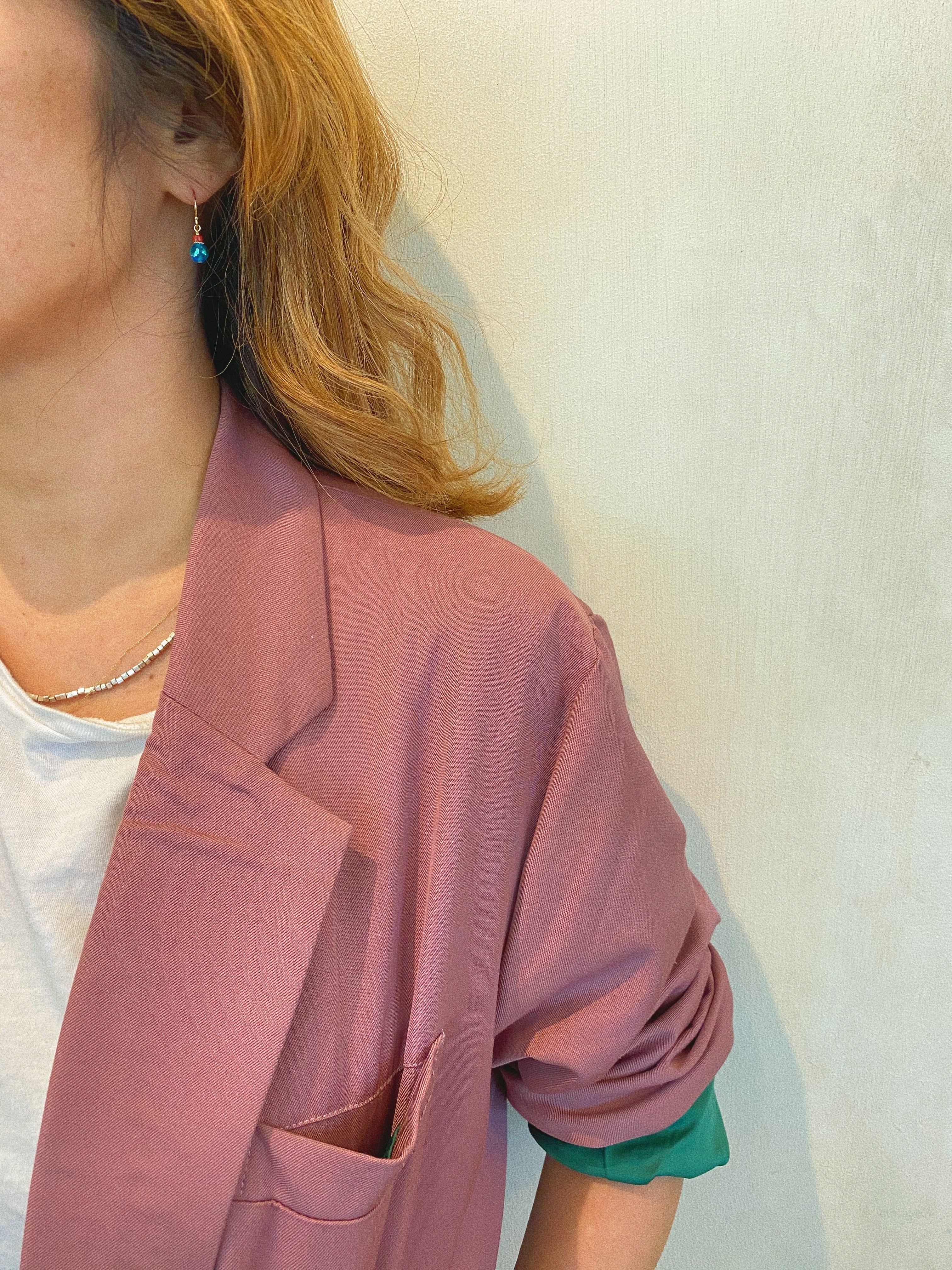 こちらの丸ピアスは、小さな赤珊瑚が光るホタルガラスの上に乗った、可愛らしいデザインです。赤珊瑚の温かみある色合いとホタルガラスの幻想的な光が絶妙に調和し、耳元を華やかに彩ります。シンプルながらも存在感のあるアイテムで、様々なシーンで活躍します。