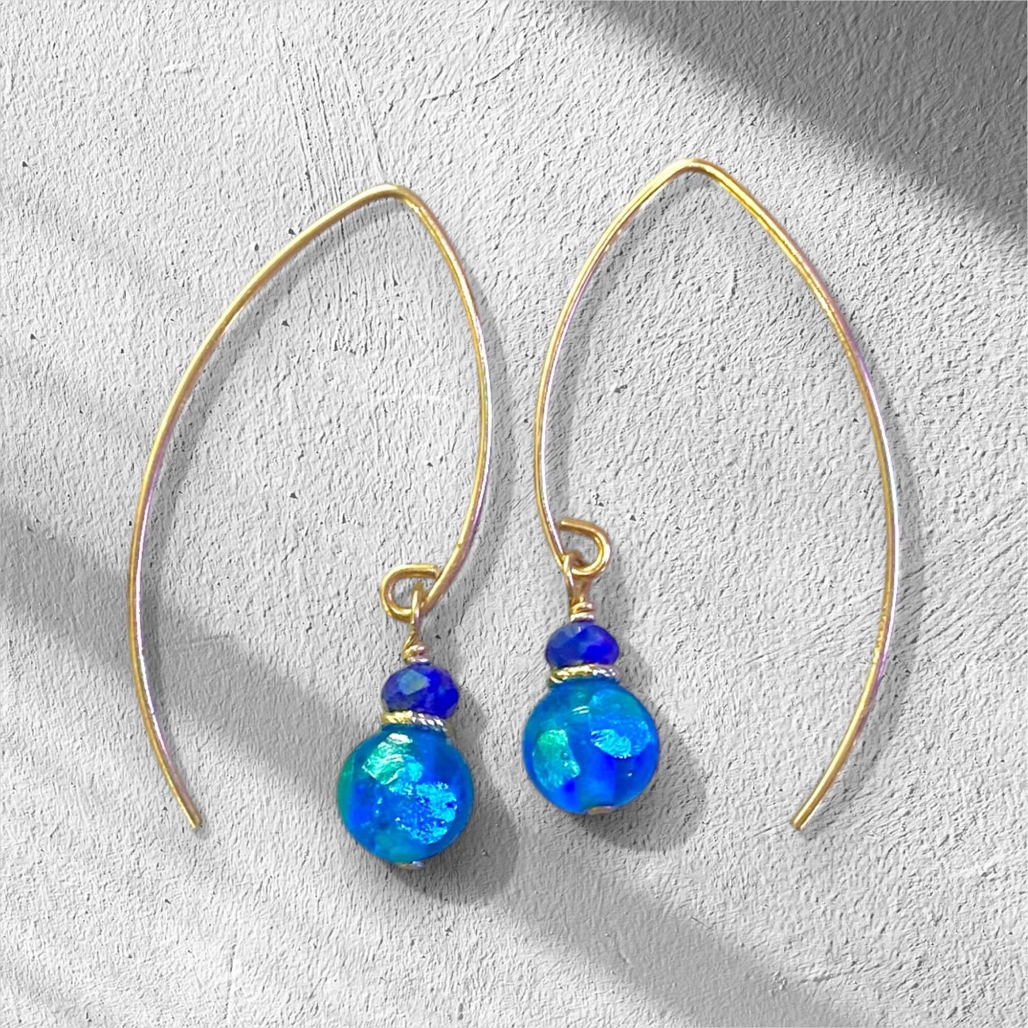 丸Vフックピアス ラピスラズリ 光るホタルガラス