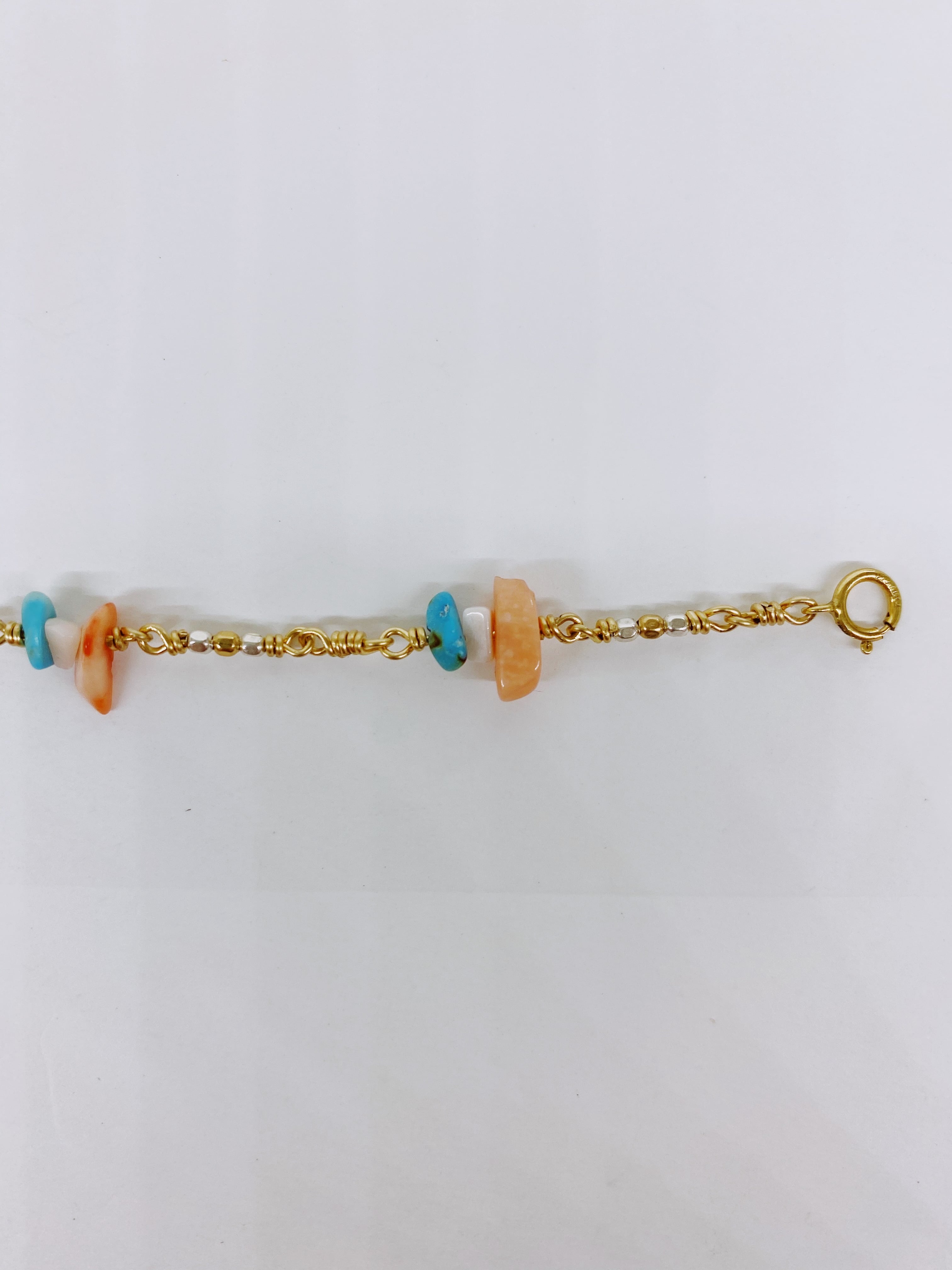チェーンブレスレット 珊瑚✕ターコイズ
