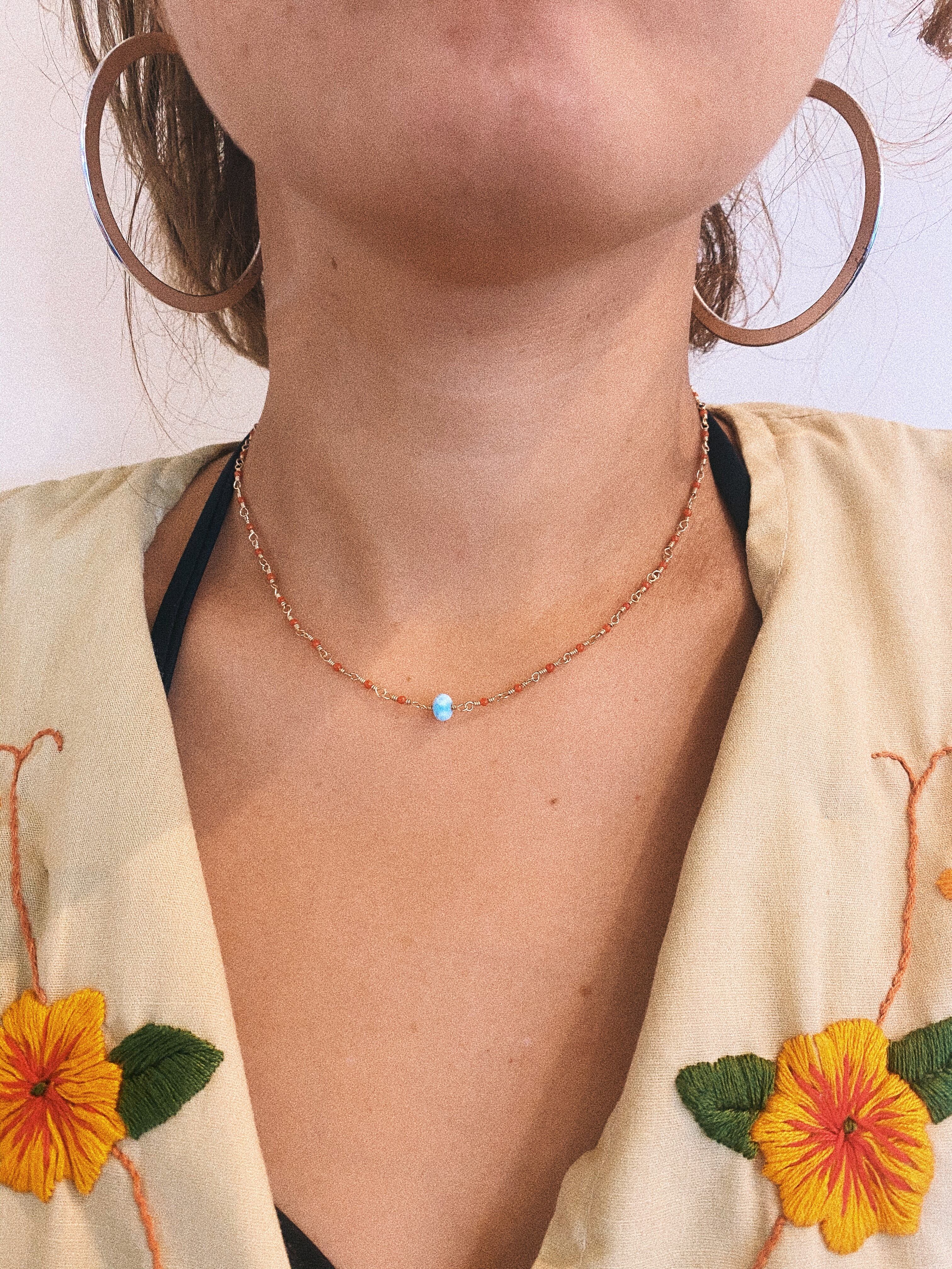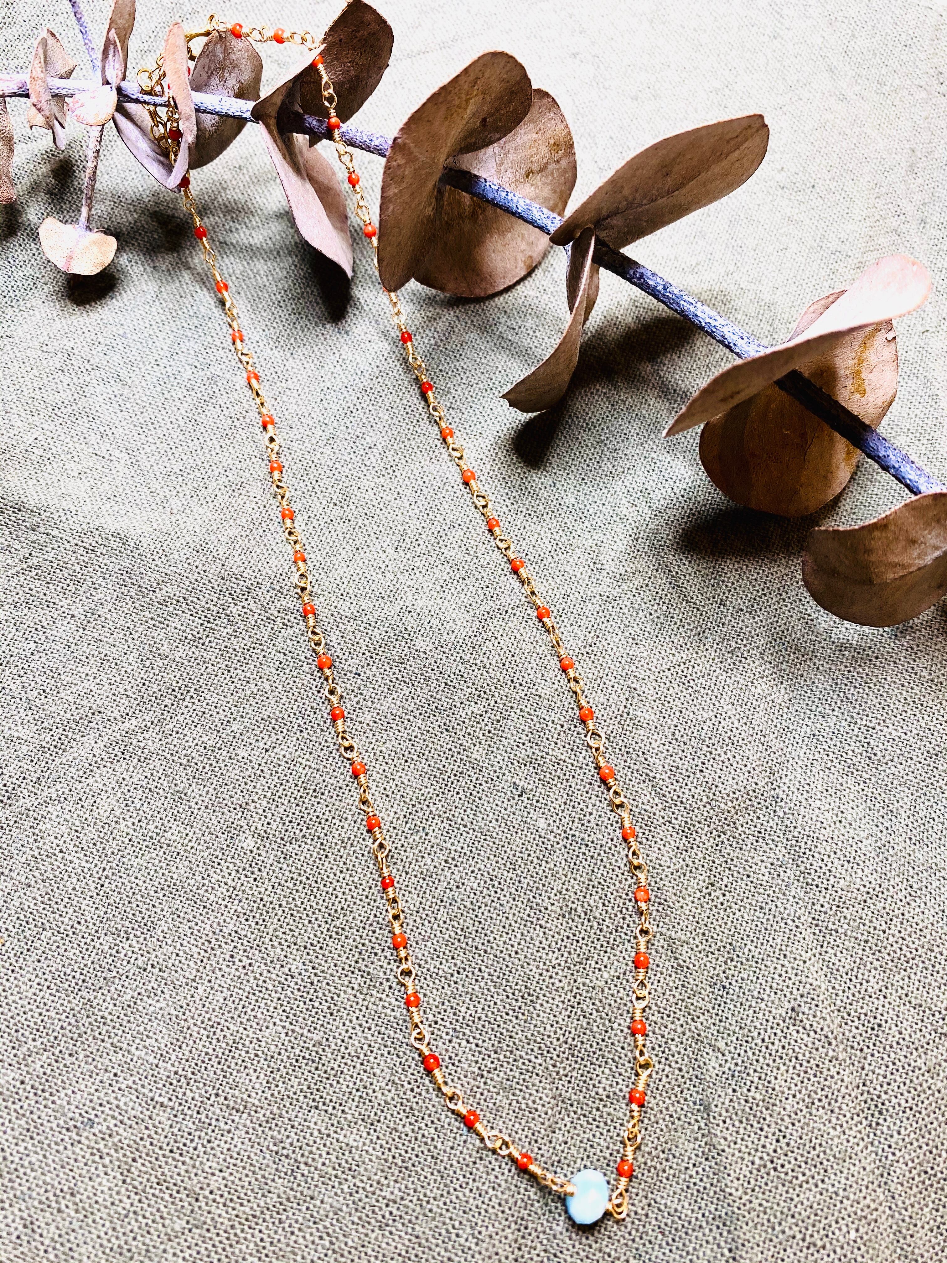 赤サンゴ×ラリマーネックレス
