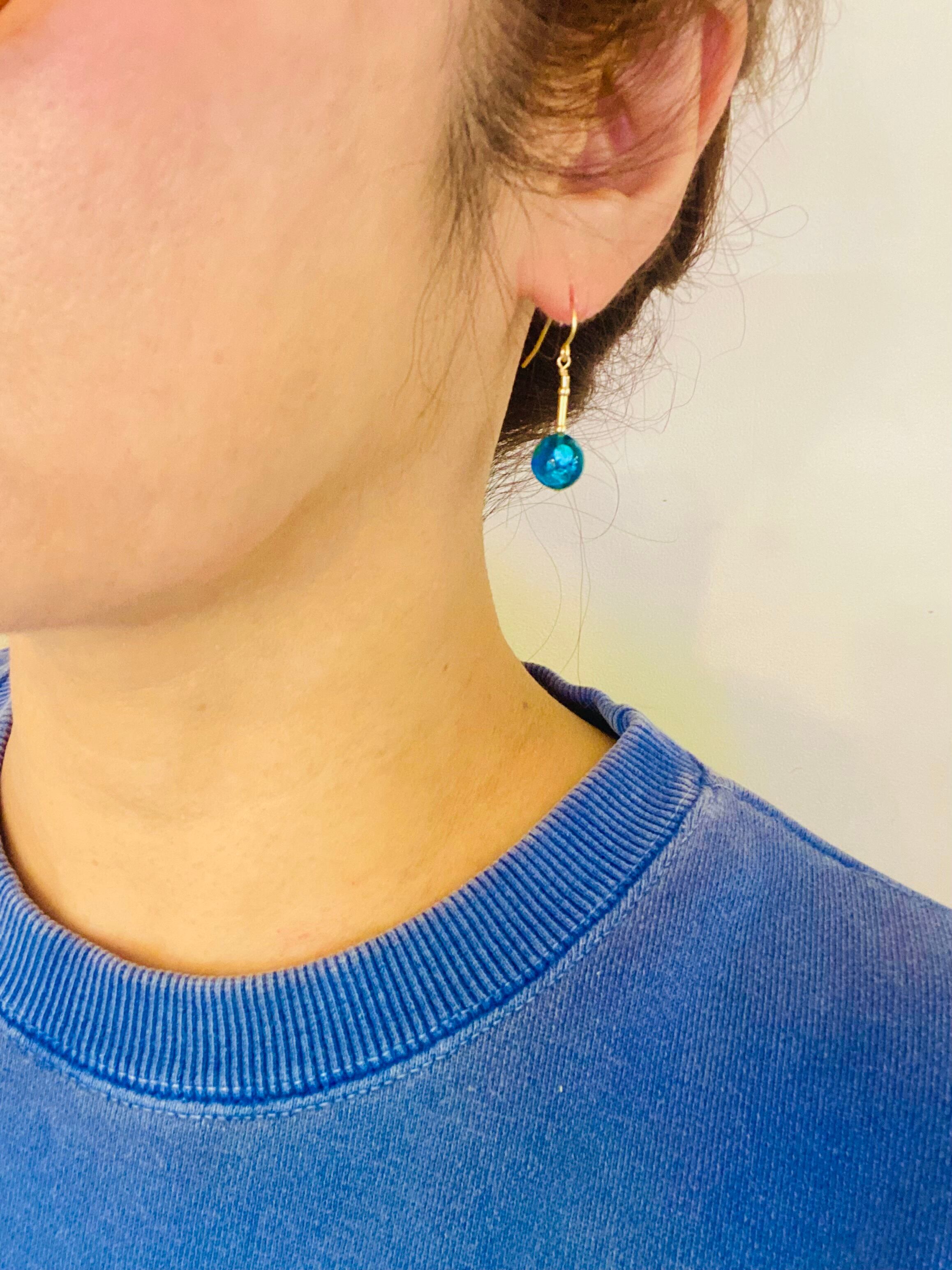 ロングタイプのため、顔周りを引き立てる絶妙な長さになっています。ホタルガラスのサイズは10mmで、手作りのため、多少のサイズ誤差が生じる可能性がございます。ご了承ください。