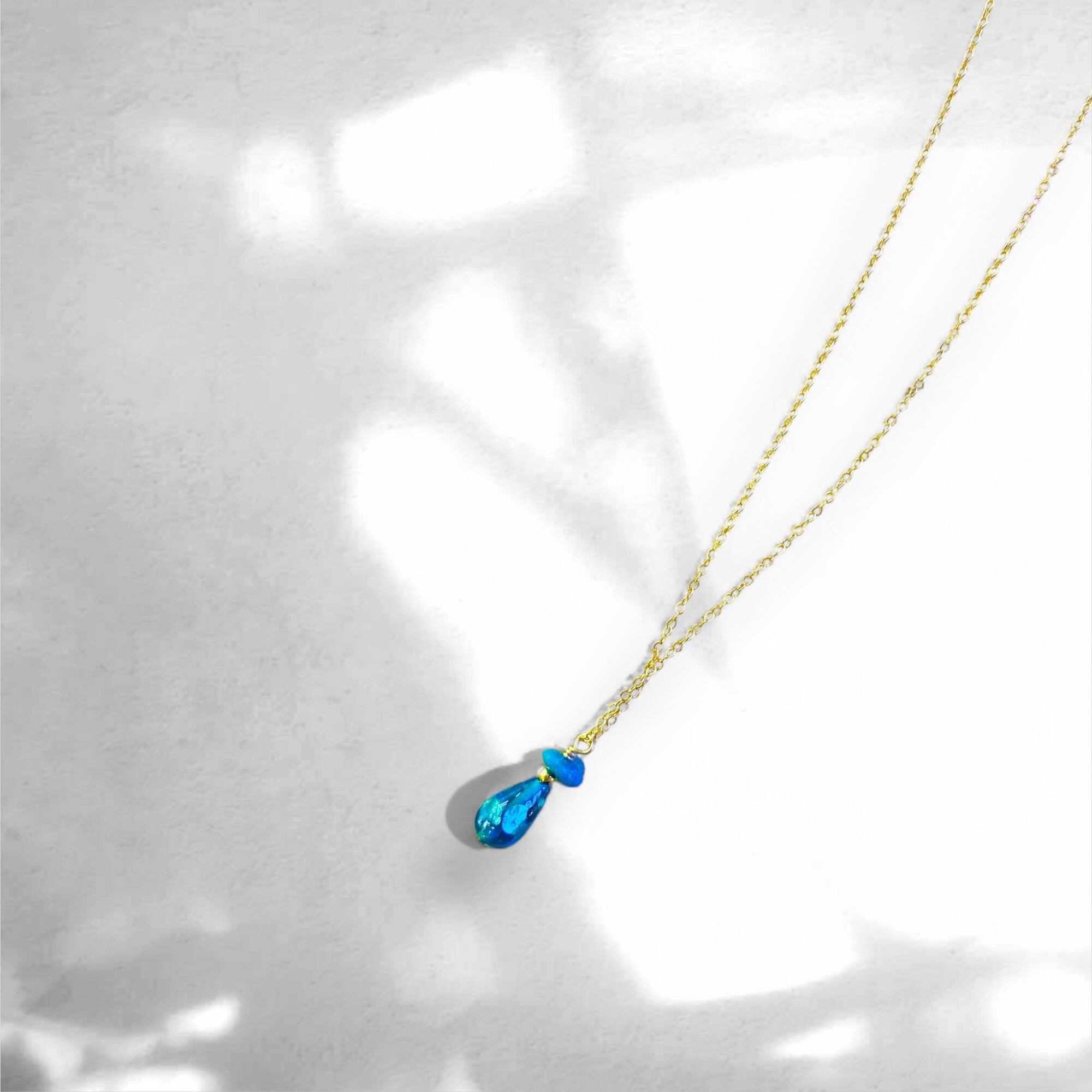 しずくネックレスS  ターコイズ 光るホタルガラス